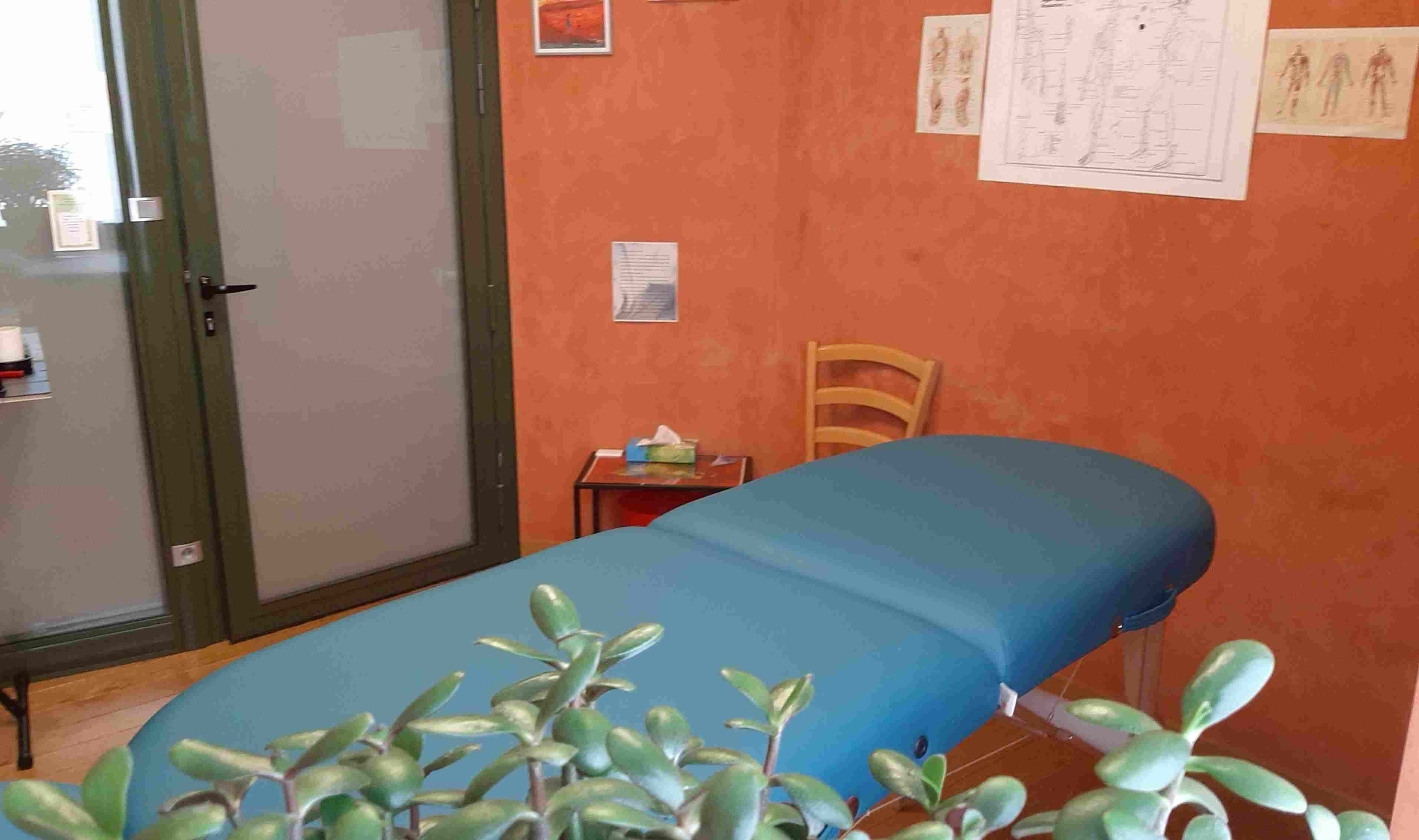 La personne est allongée sur une table de massage, avec ses vêtements et dans le relâchement.